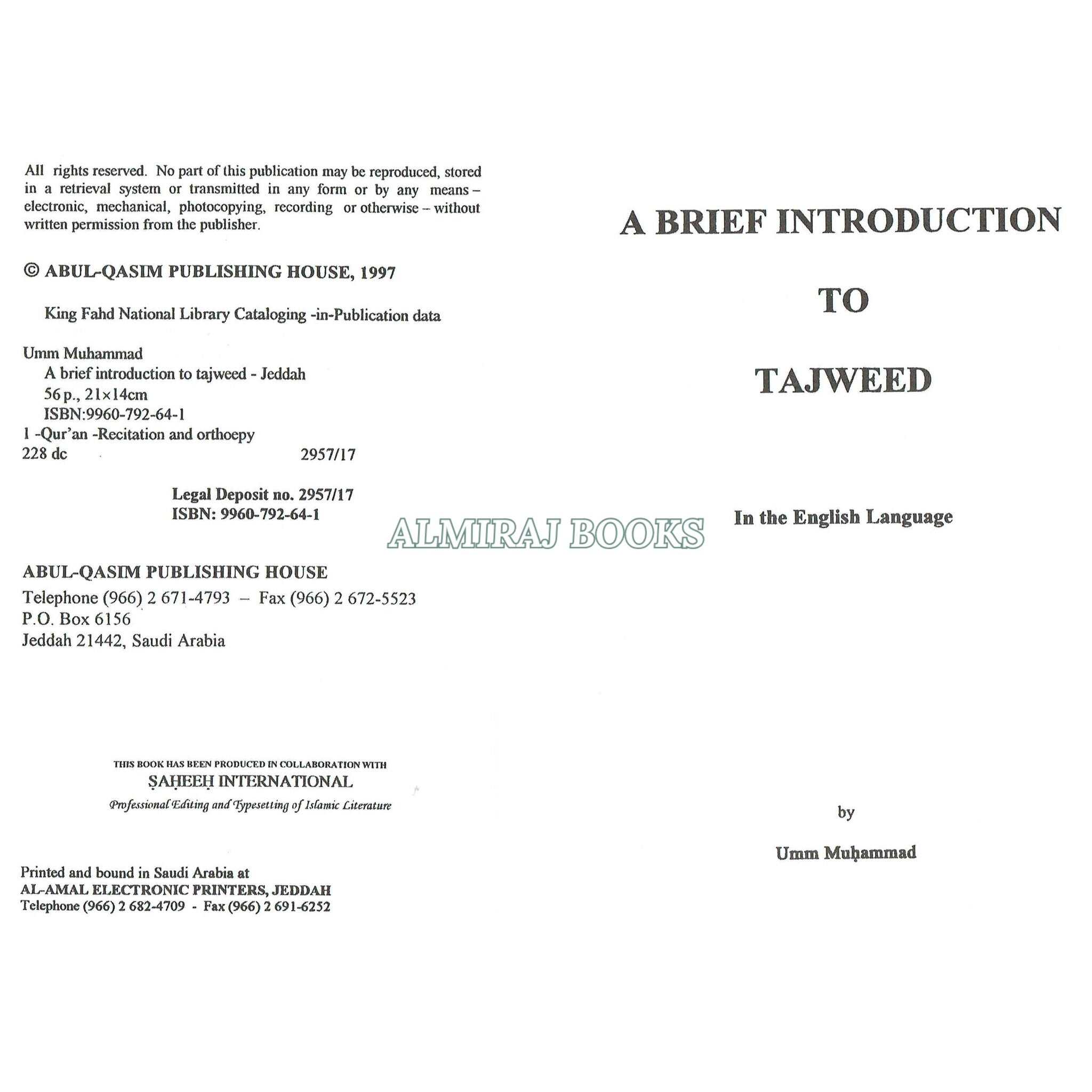 In the English language, "A Brief Introduction to Tajweed" often refers to a resource that presents the concepts and regulations of Tajweed, which is the accurate pronunciation and recitation of the Quranic text. Tajweed is an essential component of learning and reciting the Quran correctly and gracefully.
