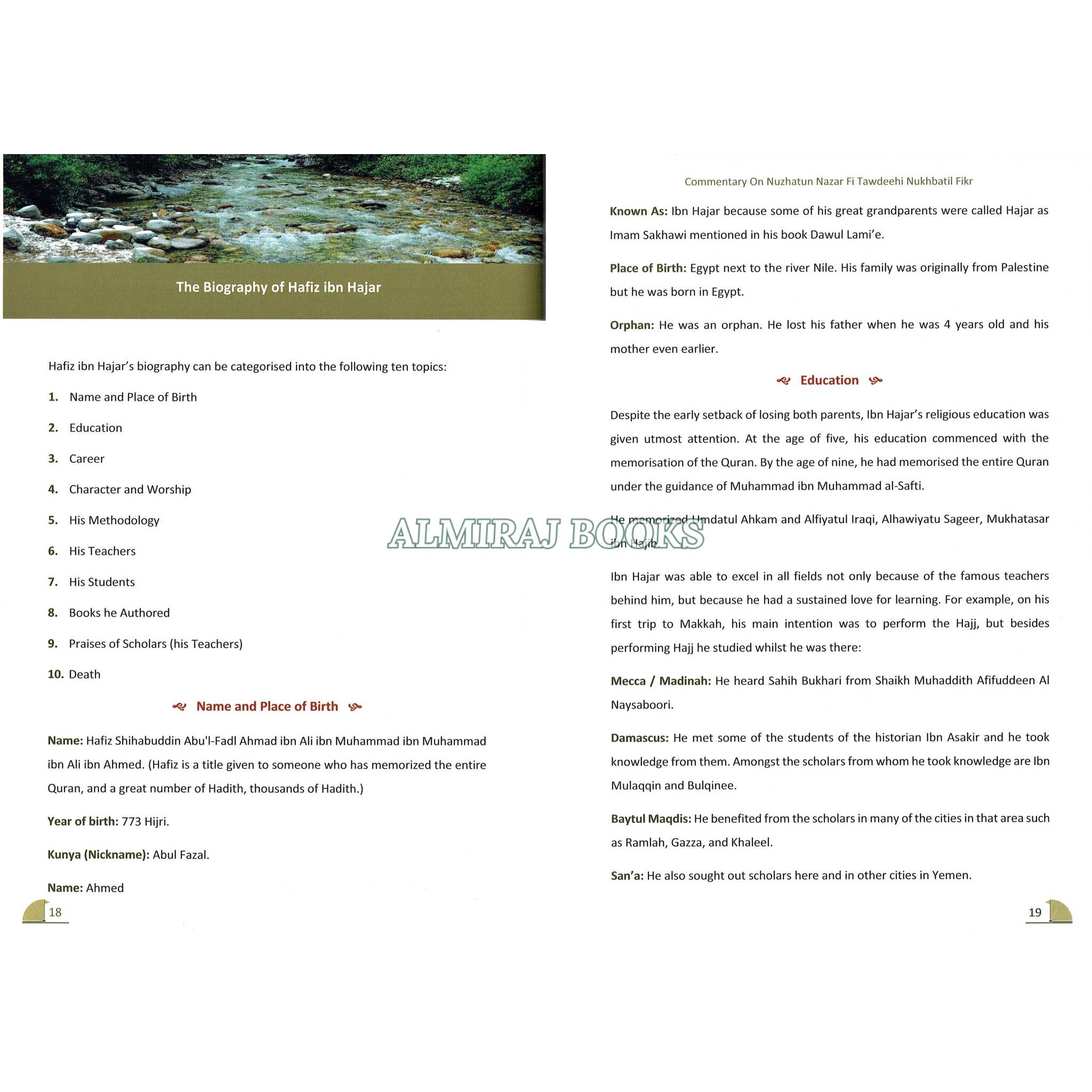 The book introduces readers to Hafiz Ibn Hajar Al-Asqalani and the importance of his work in Islamic academia. It illuminates the era in which he lived and worked.