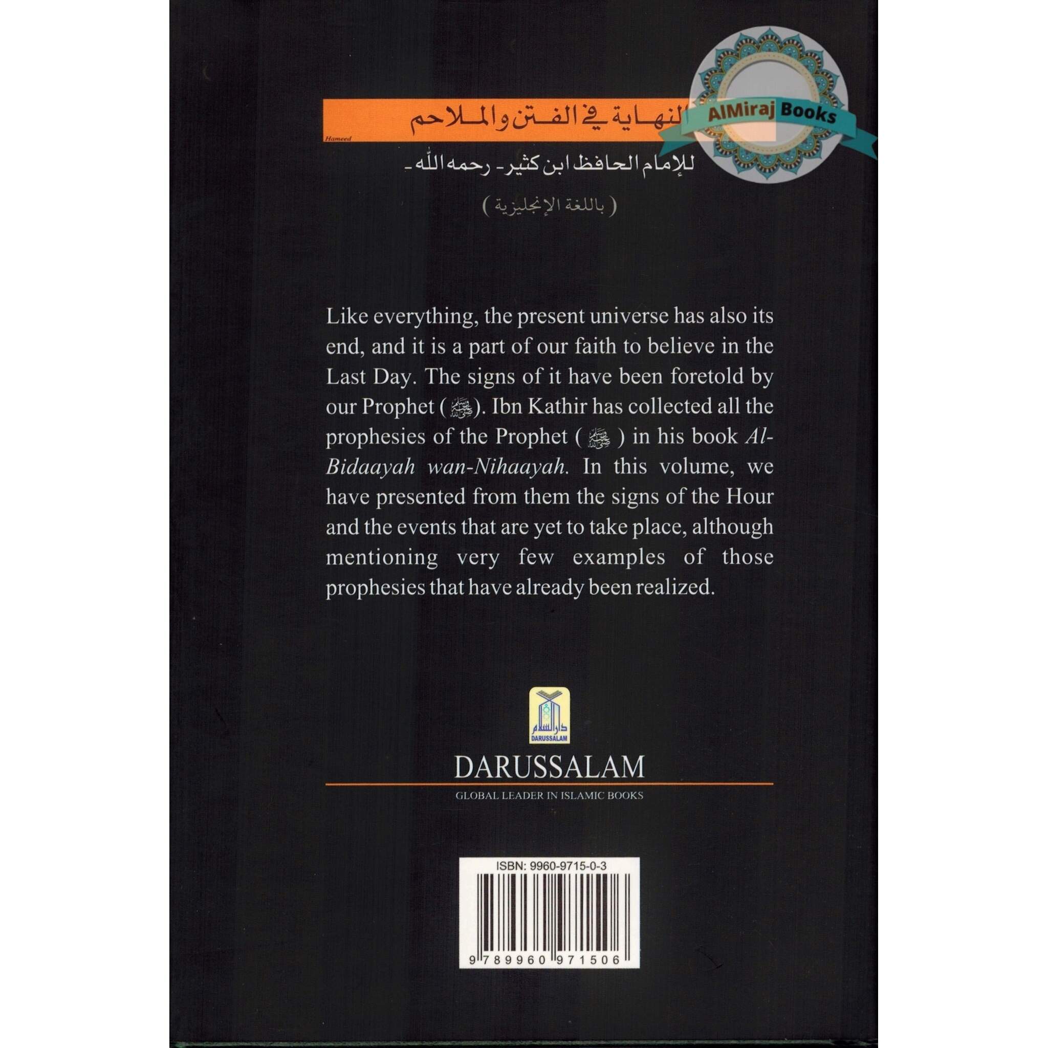 "Book of the End" looks at the advanced pertinence of eschatological lessons while outstanding solidly established in Islamic practice. Hafiz Ibn Katheer offers light on how apocalypse signals arise in the advanced world, introducing bits of knowledge that urge perusers to think about the moral, moral, and otherworldly parts of these expectations with regards to the present worldwide scene.