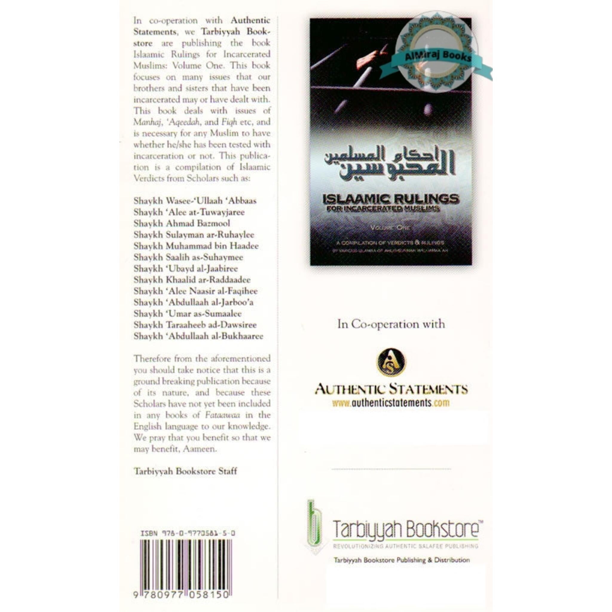 A distinct set of difficulties is encountered by Muslims who are imprisoned inside the complex web of Islamic law. "Islamic Rulings for Incarcerated Muslims (Vol. 1)" aims to clarify the various concerns that emerge in the setting of incarceration and offers thorough advice based on Islamic precepts. For Muslims who are incarcerated and trying to understand the nuances of their faith while confined, this ground-breaking book is a source of wisdom and comfort.