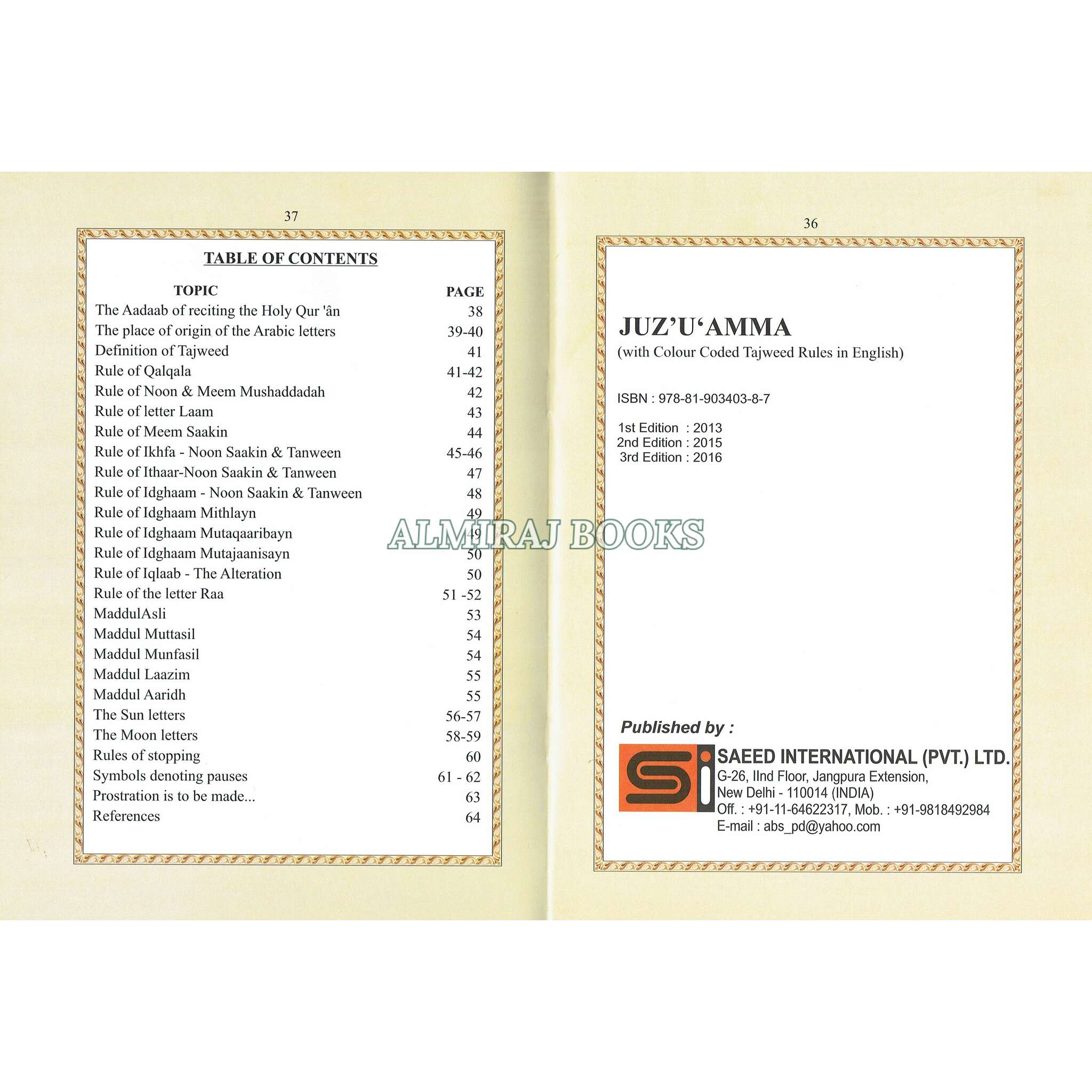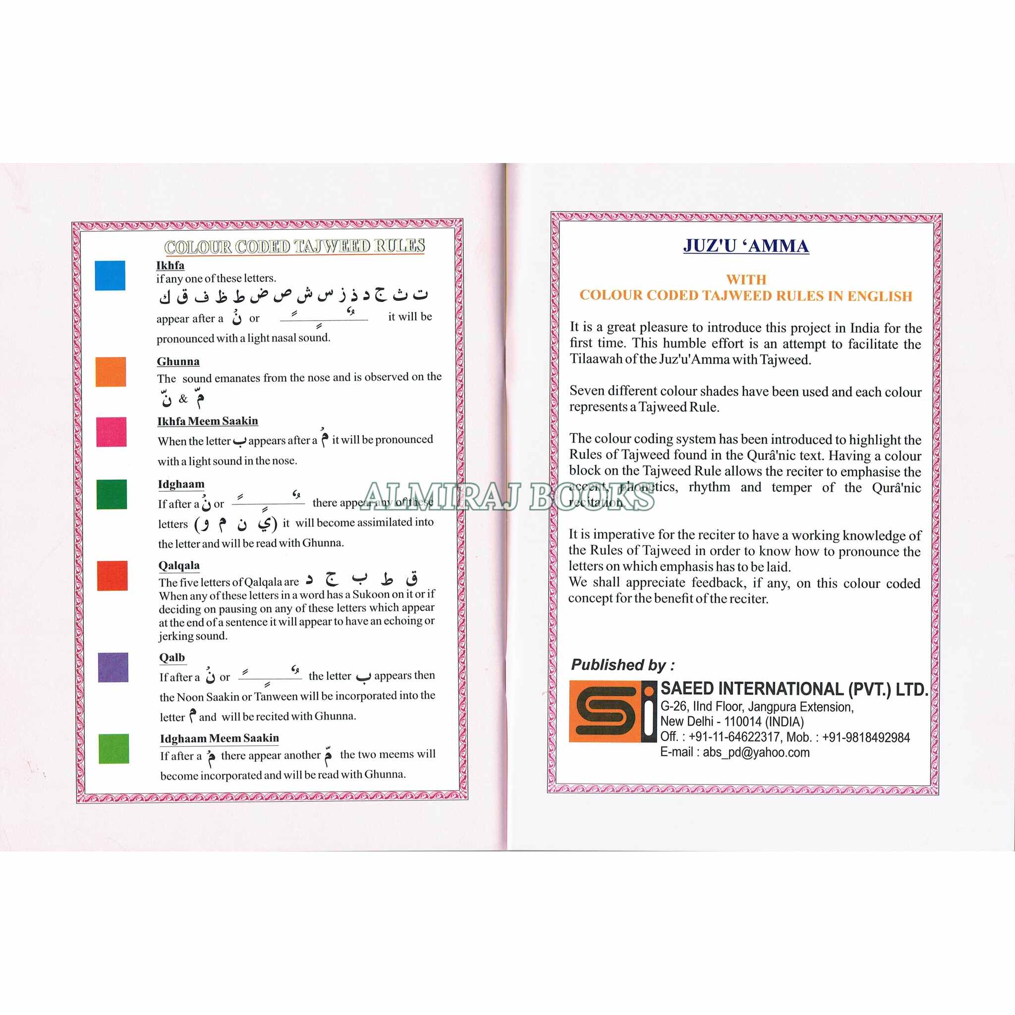 Juzu Amma With Color Coded Tajweed Rules In English (Persian/Asian/Pakistani/Indian Script)