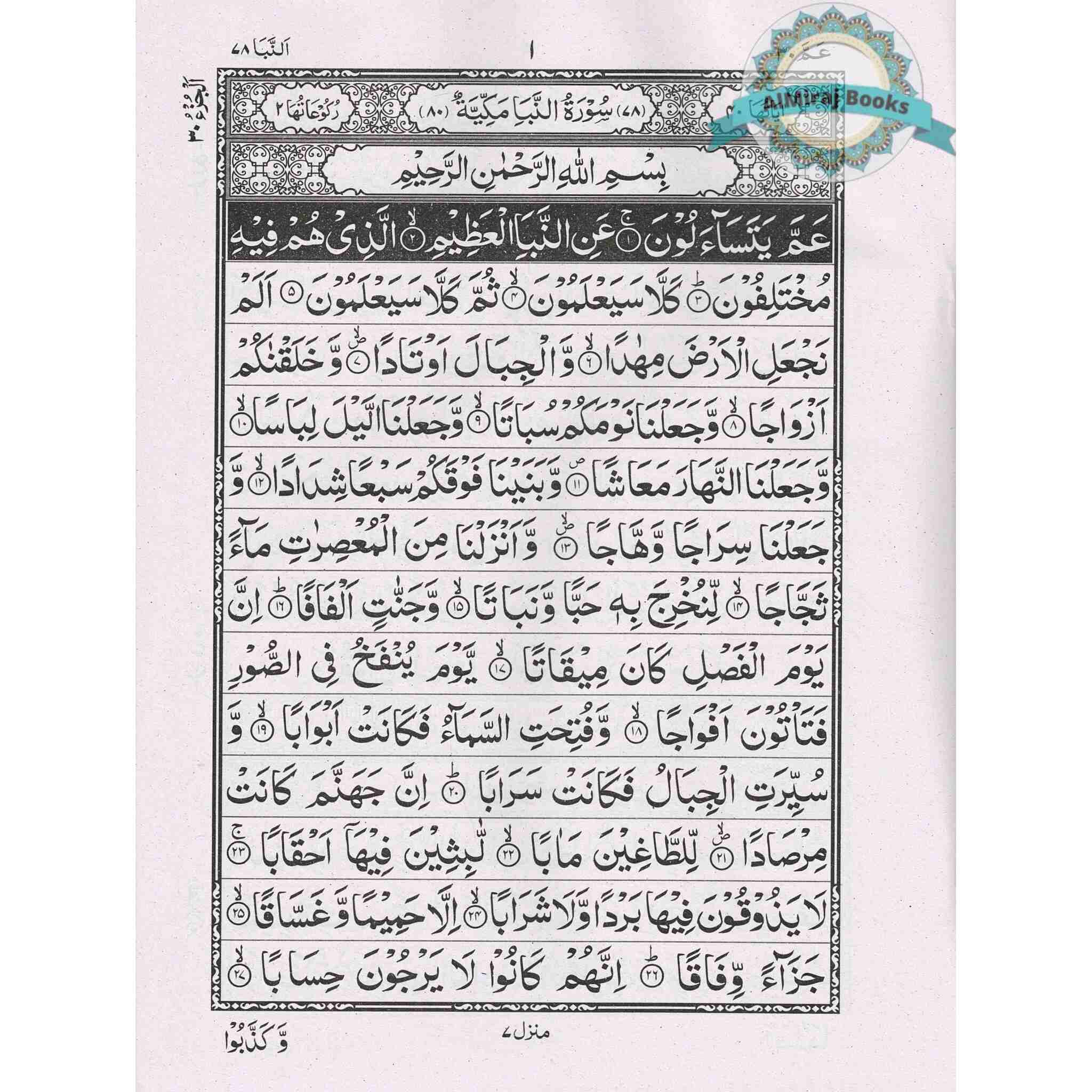 This edition of Juzz Amma, the 30th section of the Noble Qur'an, is perfect for students, teachers, and frequent reciters because it is printed in the 15-line format that is commonly used in the Indian Subcontinent. For readers accustomed to this style, the Persian/Pakistani script guarantees clarity and readability. For daily recitation and memory (Hifz), the black and white print offers a classic, uncomplicated, and distraction-free experience.
