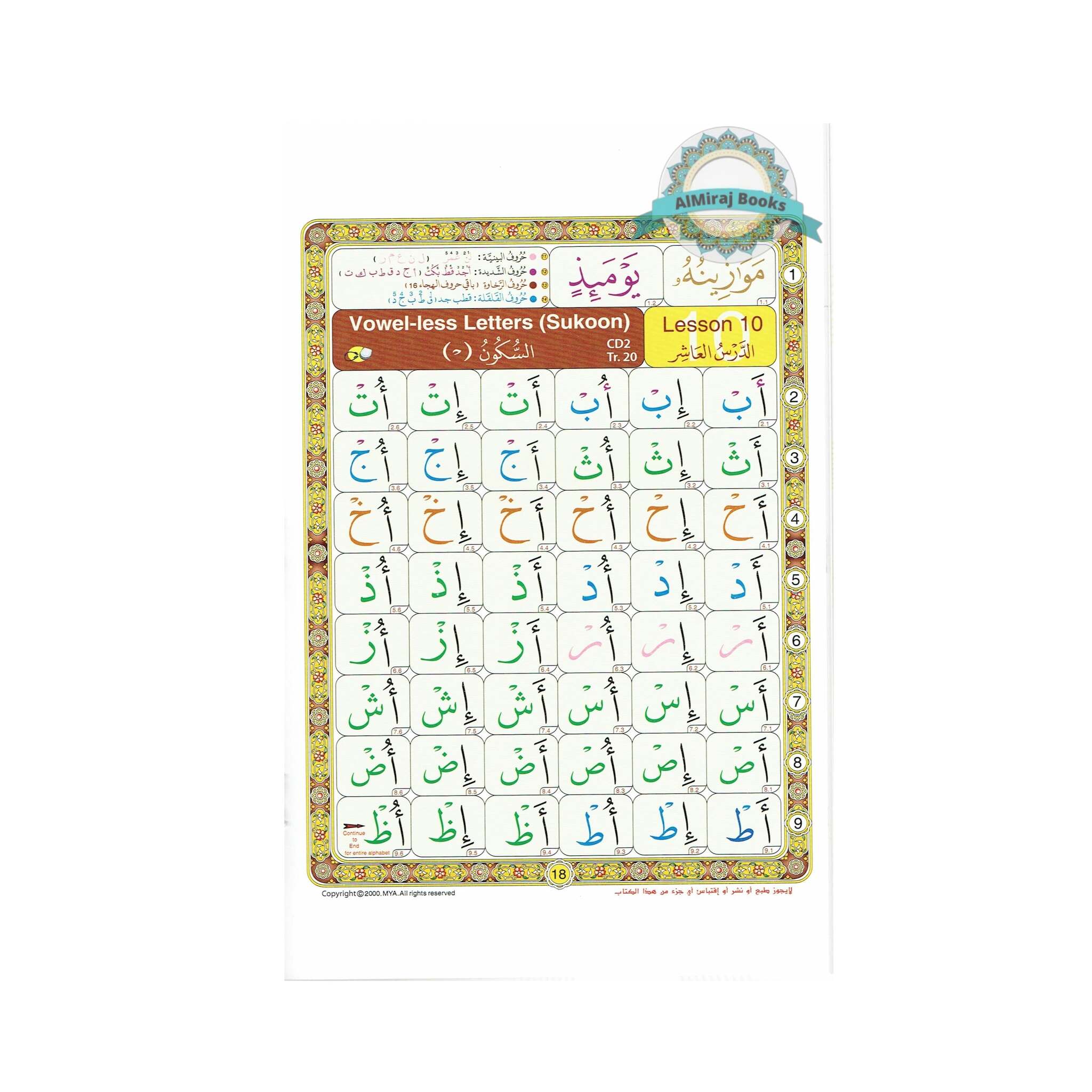 The book offers phonetic instructions as well as diacritical marks (tashkeel) to help readers comprehend how to pronounce Arabic letters and words correctly.