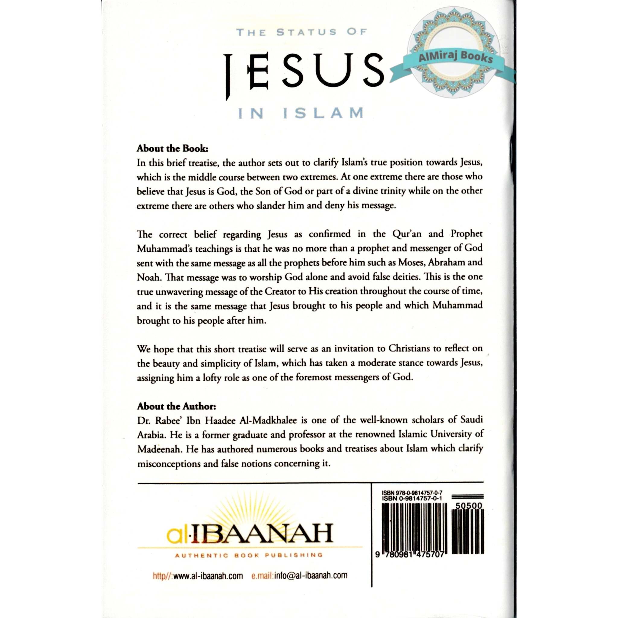 Dr. Rabee Ibn Haadee Al-Madkhalee's "The Status of Jesus in Islam" is a scholarly inquiry that offers light on the Islamic perspective of Jesus (known as 'Isa in Arabic). Dr. Rabee dives into the Quranic story, Hadith traditions, and Islamic teachings in this fascinating work to explain Jesus' unique and respected role in Islam. This book provides readers with a full grasp of the Islamic perspective on Jesus, a person of significant relevance to both Islam and Christianity.